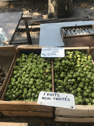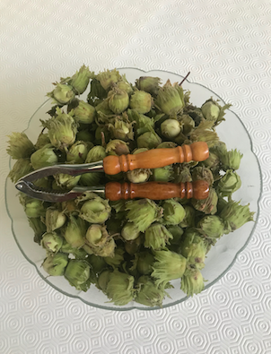How nice to see fresh hazelnuts for sale at the market this morning. Of course I had to purchase a kilo.