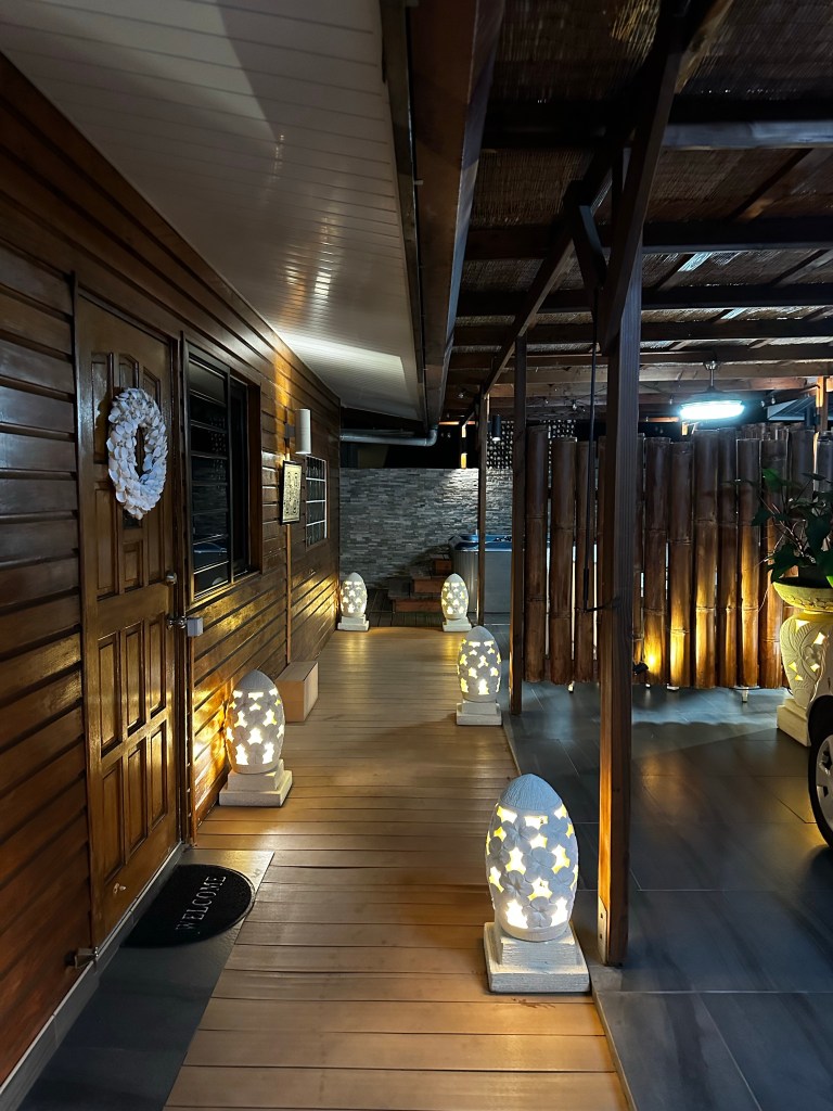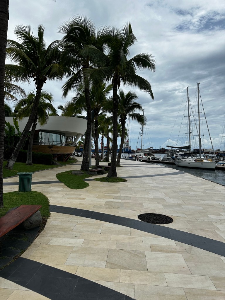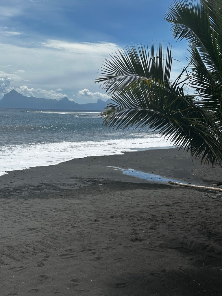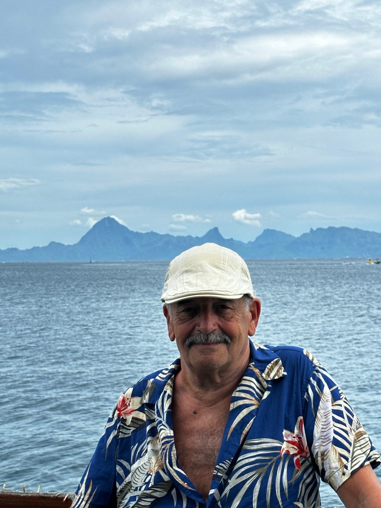 To make my friend Sem jealous, I brought my collection of exotic shirts. The island of Moorea , where we are moving to tomorrow, is in the background.