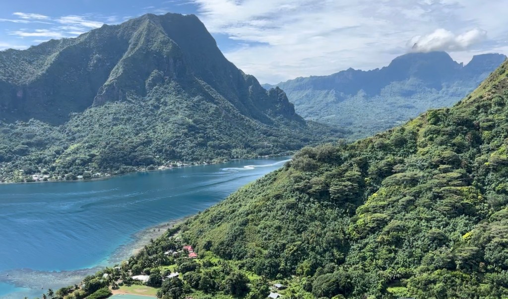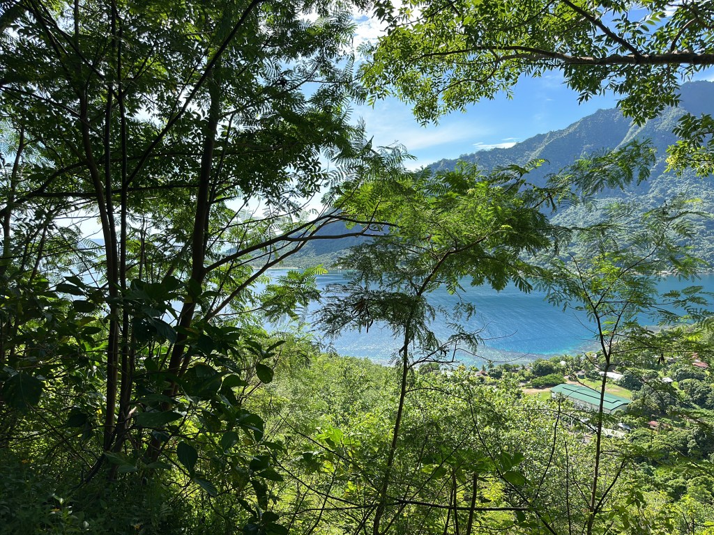 The first of these stops is at ” La Montagne Magique” where for a mere 200 CFPF you are allowed to walk up to the view point. Not an easy task as it is quite steep and of course very hot. But it is really worth it. The 360º view at the top is breathtaking and highlights what Polynesia is.