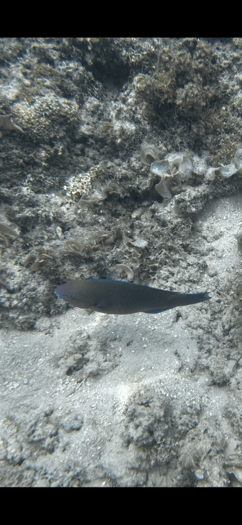 The water is warm and clear and I take my very first underwater pic.