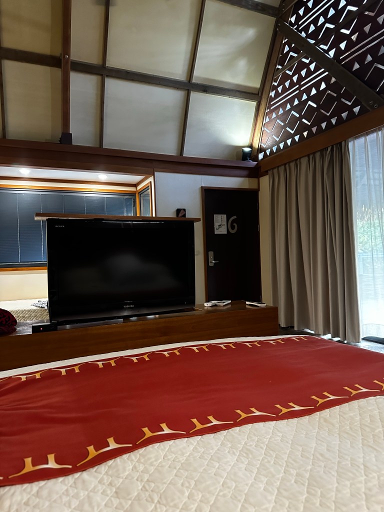 Later we have to change bungalow because there is no cold water coming through and the shower is scolding hot. We move next door and it is even slightly better.