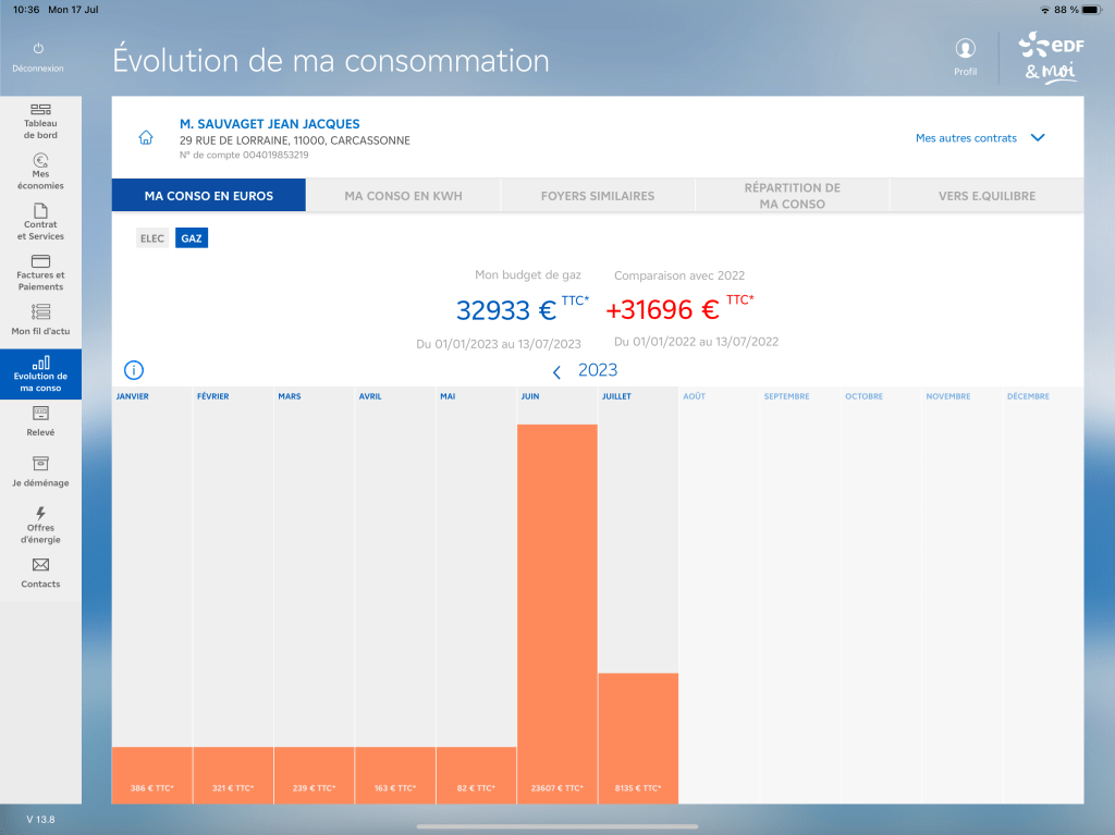 At the end of June I contacted our energy provider EDF to inform them that our estimated consumption as shown on their web site was completely out of order (see blog post).