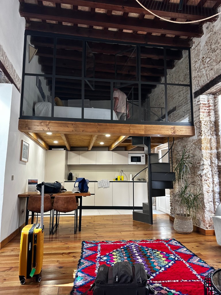 Our lovely appartment is located in a small side street a few steps away from the cathedral. The only inconvenient affects only me and is due to the steep staircases which I have difficulty in negotiating with my wobly knee.