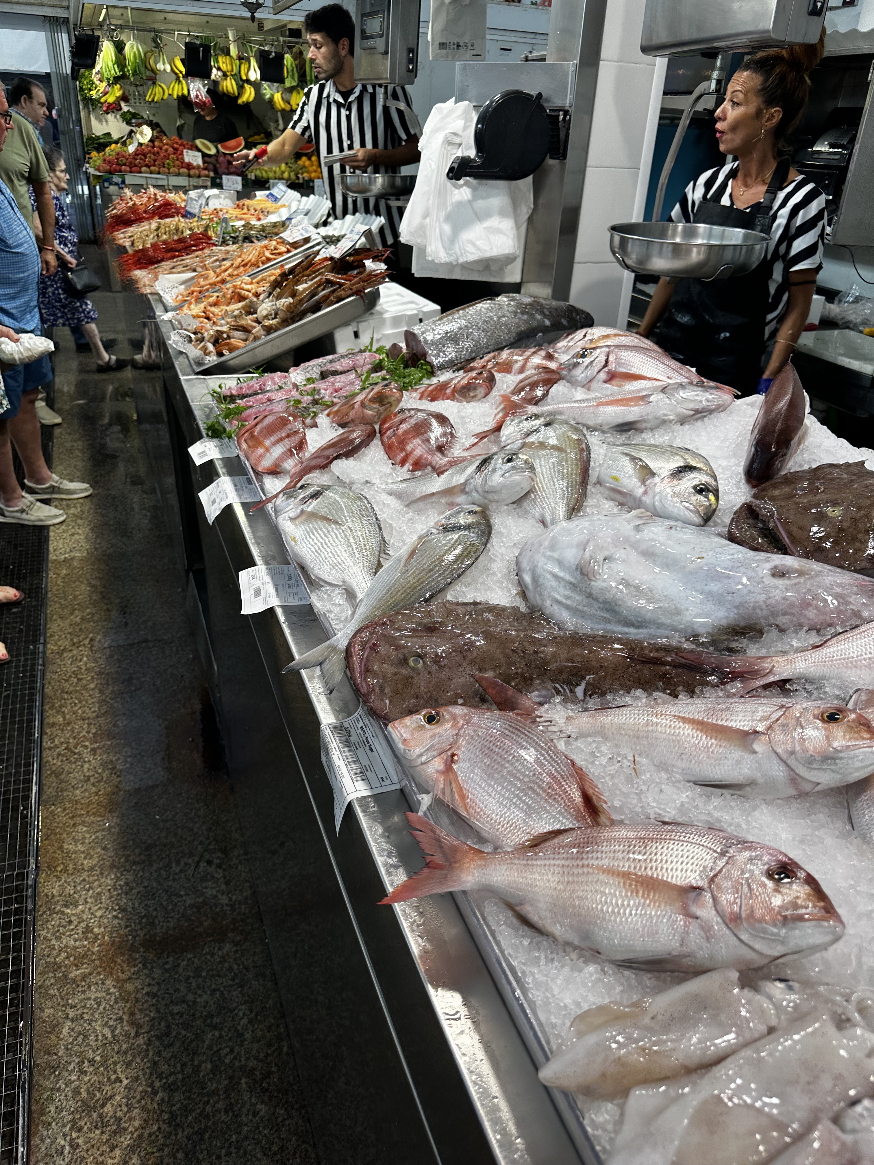 Later this morning, we are meeting some other UK friends who happen to be touring the area in their camper van. Before that we decide to go and explore the town and walk past a very interesting food market, mainly fish. Fresh food, much choice and cheap.