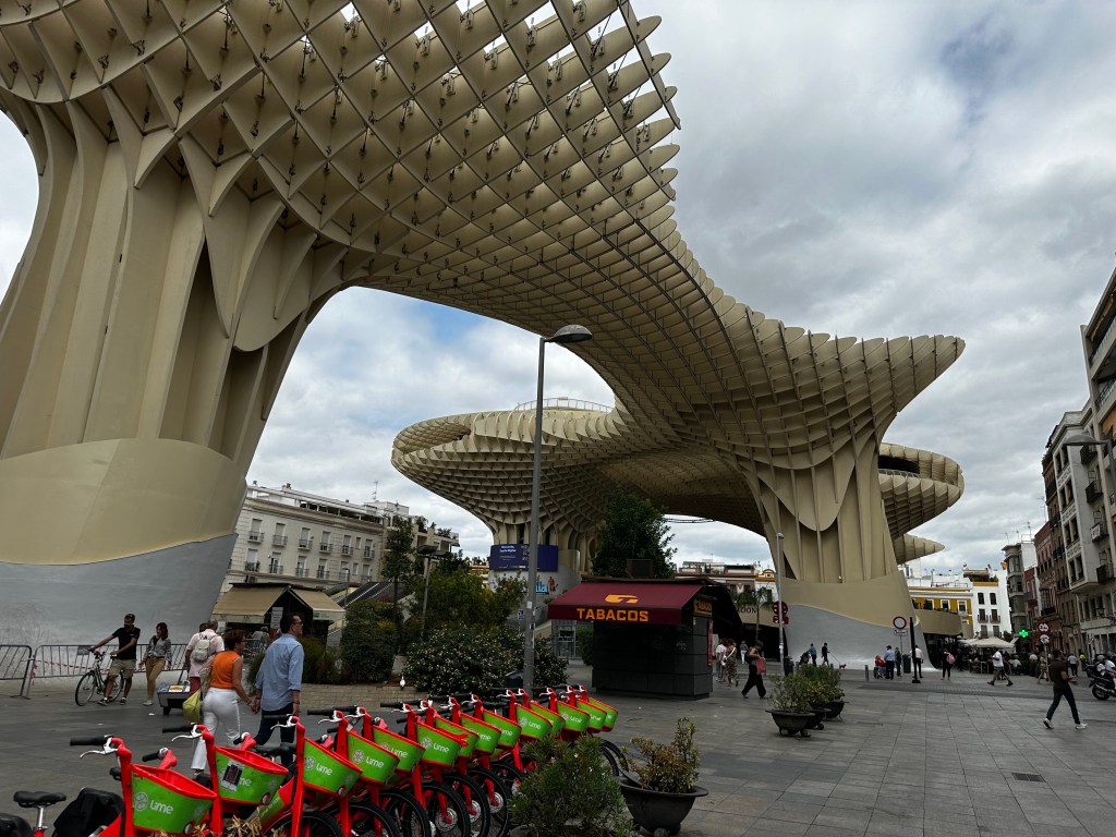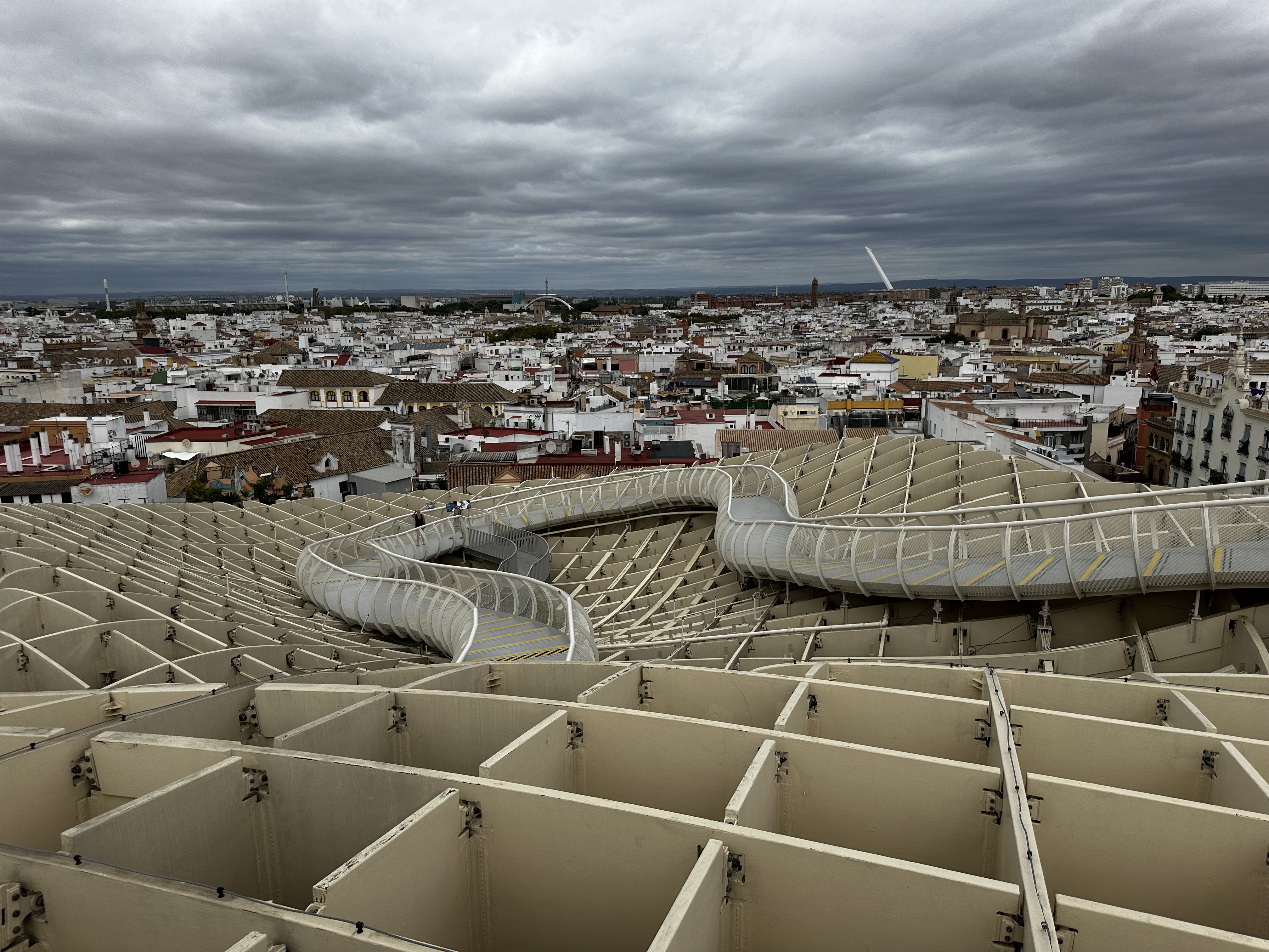 The first time I was in Seville, a coupleof years ago, I was not impressed at all. I changed my mind this time. FIrst thing we did was to visit the Setas de Sevilla which is apparently the largest wood structure in Europe. It gave us a nice view of the town despite the grey but nevertheless warm weather.