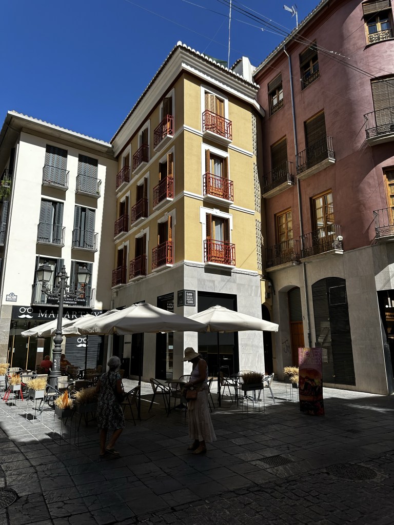 Our appartment was on the first floor of this “ocre” building. Brilliantly located in the middle of the shopping and old district of town.