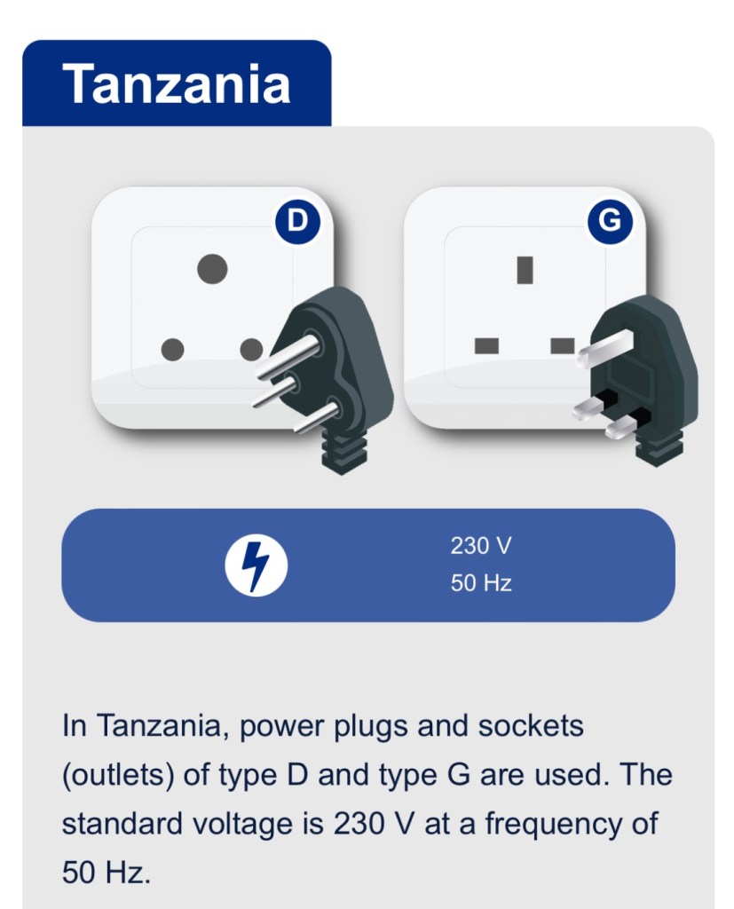 Not forgetting a plug 🔌 adapter needed in Tanzania.