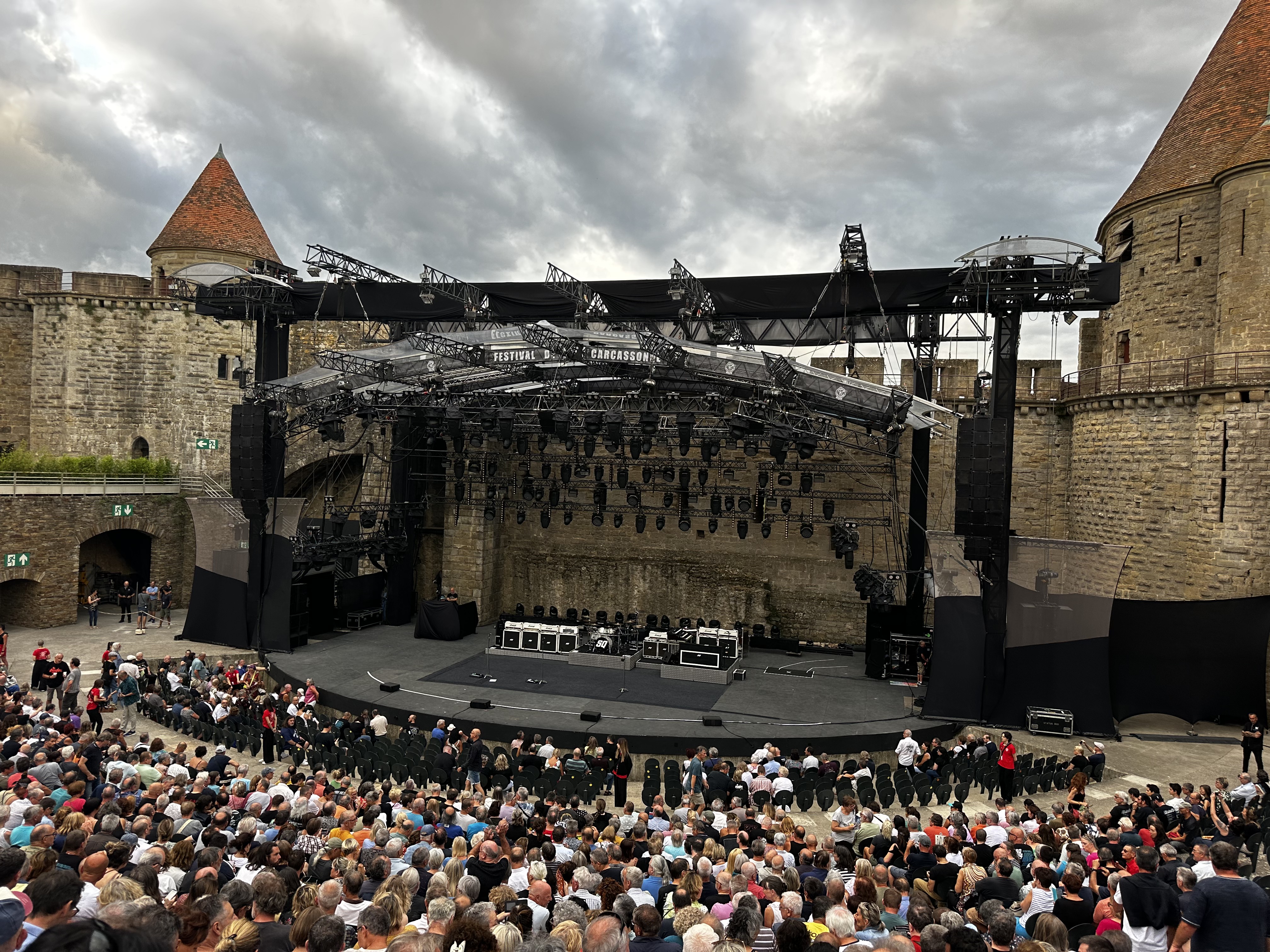 After a triumphant round of golf (where I may or may not have lost a few balls to the water hazards), a refreshing shower, and a pit stop at my brother’s for some much-needed hydration, it was time to head to the Cité de Carcassonne. Why, you ask? Because we had tickets to one of the concerts of the year, part of the annual Town Festival!