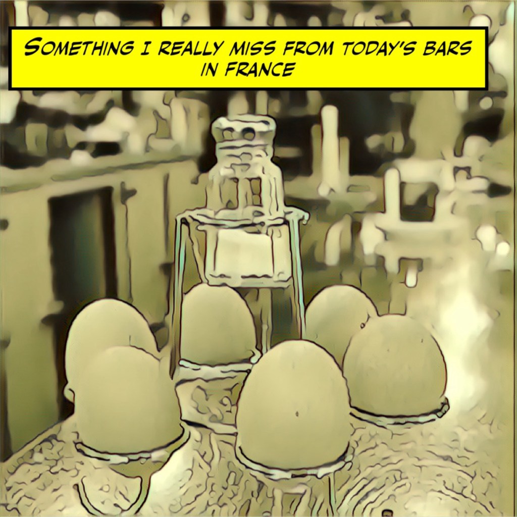 Every bar in France counter had this hard boiled egg holder together with a salt dispenser. I wonder why it disappeared.