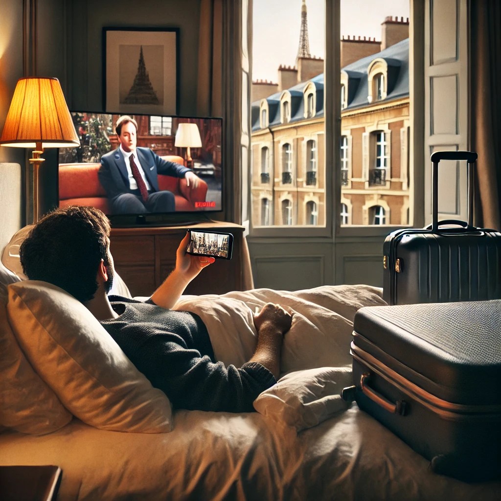 Heureusement, nous n’avons pas à quitter notre hôtel avant midi et, après un petit-déjeuner plutôt agréable, me voici avec quelques heures imprévues à combler. Pas vraiment le temps d’organiser une visite éclair d’un château ou d’un musée. À la place, je savoure ce moment de paresse imposée : confortablement installé sur mon lit d’hôtel, un vieil épisode de Frasier diffusé sur mon téléphone, tout en tentant d’écrire ces quelques lignes.