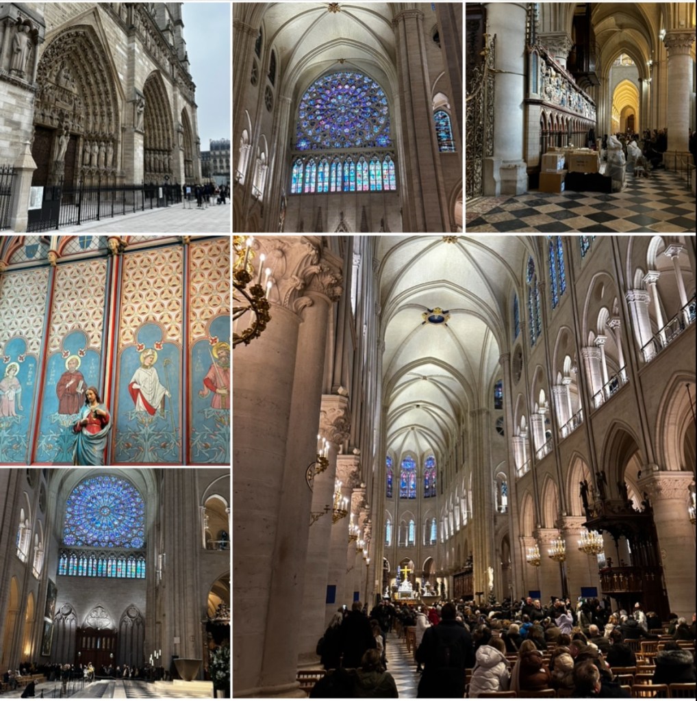 À 14h30 précises, nous avons pénétré dans la Notre-Dame fraîchement restaurée. Les mots—et même les photographies—ne parviennent pas à capturer la transformation. La lumière danse désormais à l’intérieur, illuminant les peintures et ornements méticuleusement restaurés. La cathédrale semble renaître, sa splendeur rehaussée par la conscience de tout ce qu’elle a enduré. Je soupçonne que ce ne sera pas ma dernière visite.