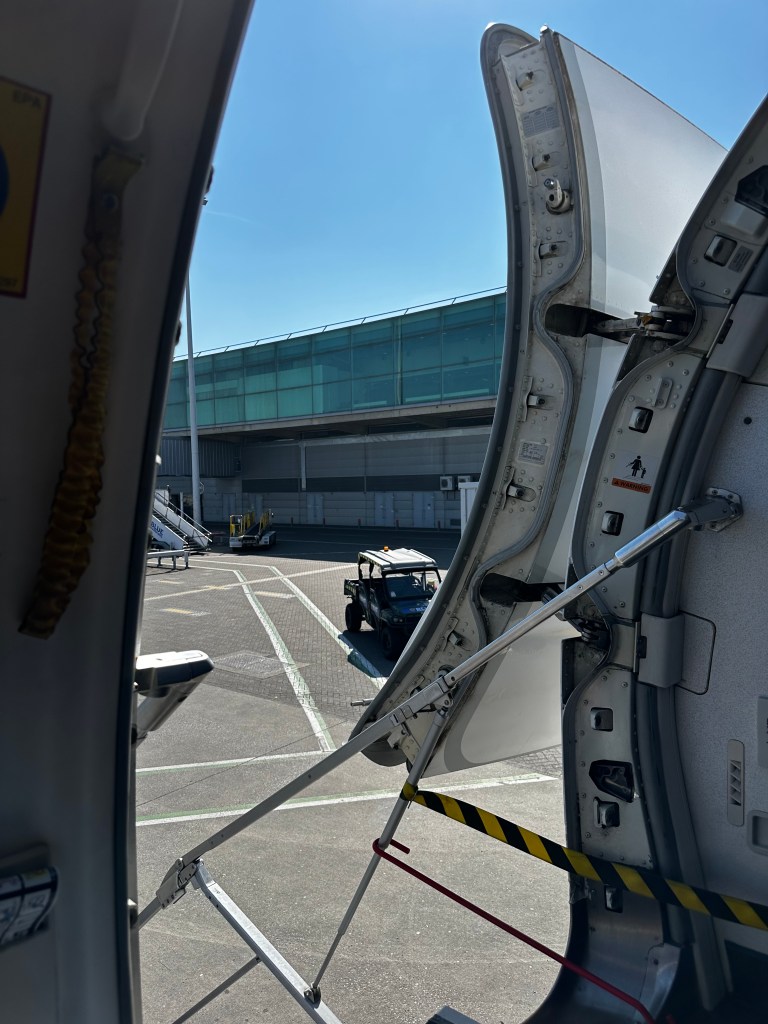 Naturally, there was time for one last pint—an unofficial tradition that I suspect every traveler upholds. Around us, the background hum of humanity: laughter, conversation, the occasional boarding announcement lost in the din. Soon enough, it was time to board, which, in Ryanair terms, meant standing in a corridor and on a flight of stairs for 15 unnecessary minutes. A ritual I despise. My strategy? Stay seated until the absolute final call. Ryanair frowns upon this. I do not care.