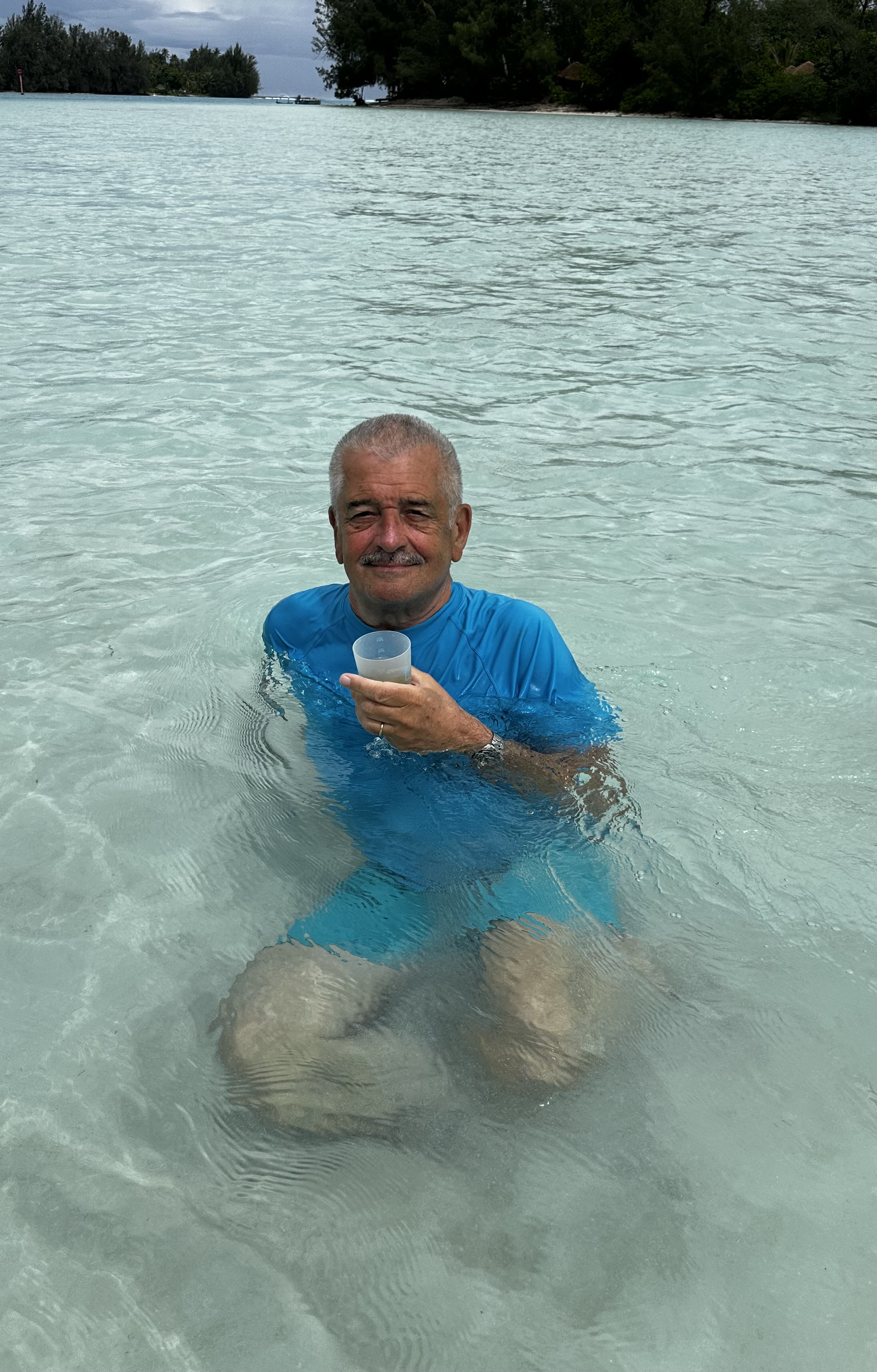 Out comes the homemade punch — best served standing in thigh-high ocean while being casually circled by curious manta rays. They kept a polite distance, because even manta rays respect cocktail hour.