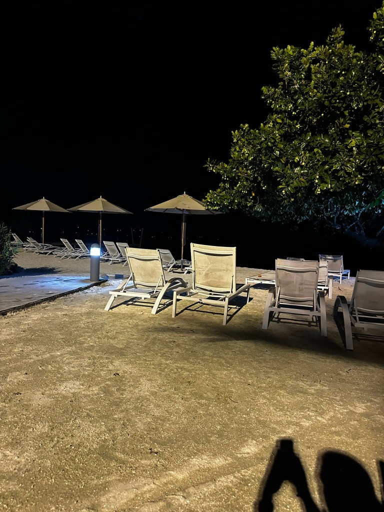 Last night, in a rare burst of energy (possibly fuelled by the thrilling memory of raw fish for lunch), we decided to go out. Yes, you read that right — shoes were worn, car keys located, and off we drove into “town” for a cocktail. Destination: Maitai Lapita Village, a charming hotel not far from the airport and our tropical stomping ground from two years ago. It looked more or less the same, though to be fair, we saw it in total darkness — which conveniently hides all signs of aging, human or hotel.