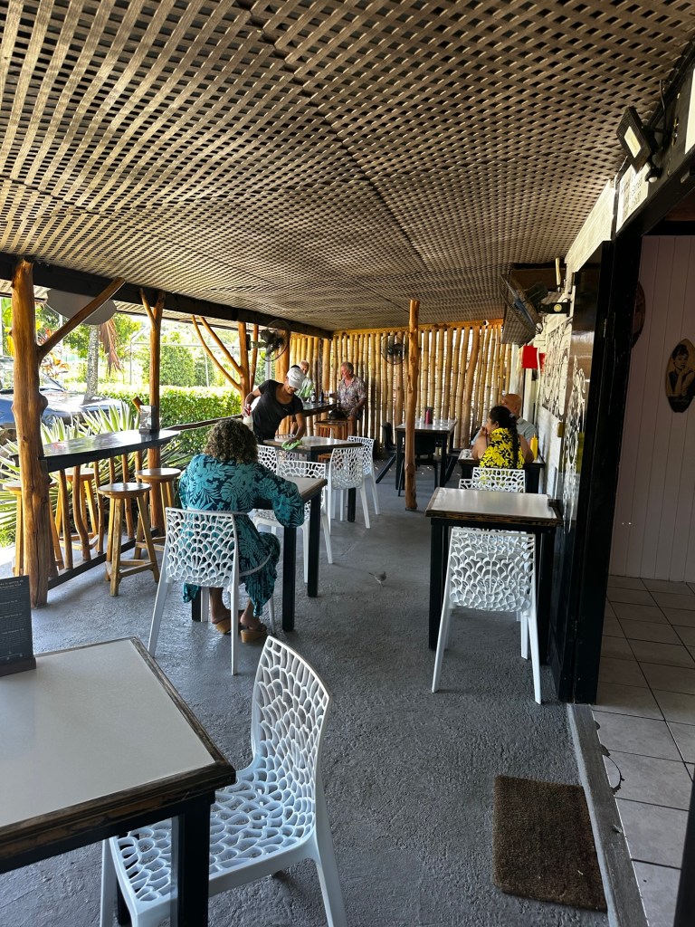 Hier soir, dans un rare élan d’énergie (probablement stimulé par le souvenir palpitant du poisson cru du déjeuner), nous avons décidé de sortir. Oui, vous avez bien lu — des chaussures ont été enfilées, les clés de la voiture retrouvées, et nous avons mis le cap sur le “centre-ville” pour un cocktail. Direction : l’hôtel Maitai Lapita Village, pas très loin de l’aéroport, et notre ancien terrain de jeu tropical d’il y a deux ans. Il n’a pas changé… du moins, à ce qu’on a pu voir dans le noir total — ce qui, à vrai dire, est un excellent filtre anti-rides, pour les hôtels comme pour les humains.
