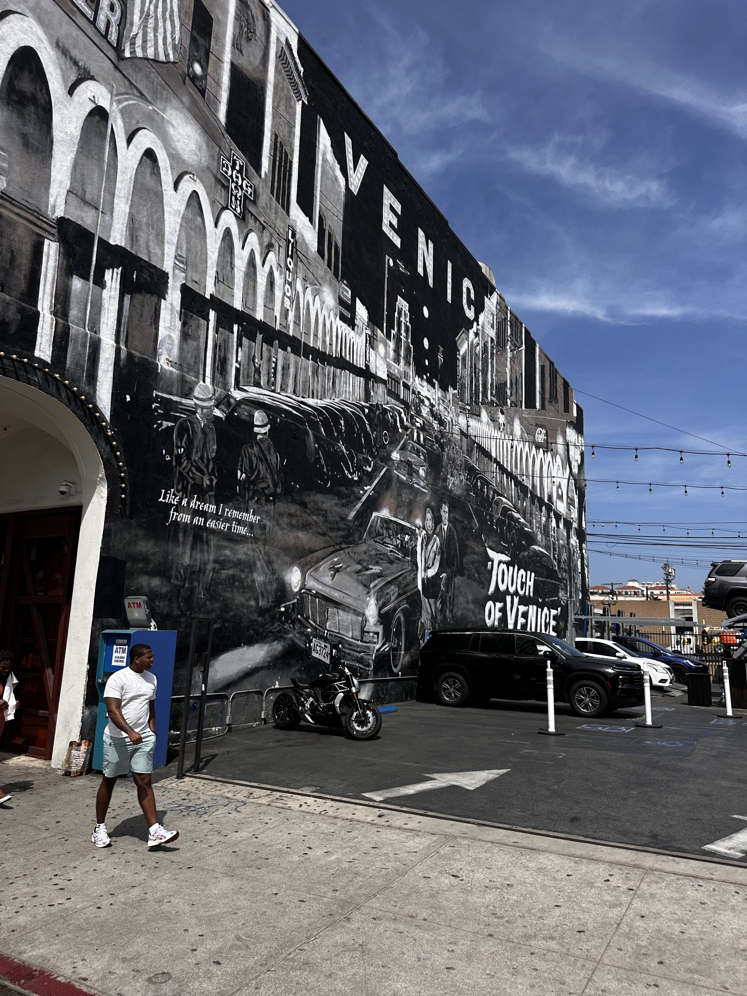 By now I’m nursing my sorry excuse for a coffee and tapping out emails while waiting for my brother and his spouse to appear, which, miracle of miracles, they do—on time. We devise a cunning plan: all four of us shall convene at 10:15 to Uber over to Venice Beach and see what Los Angeles has in store.