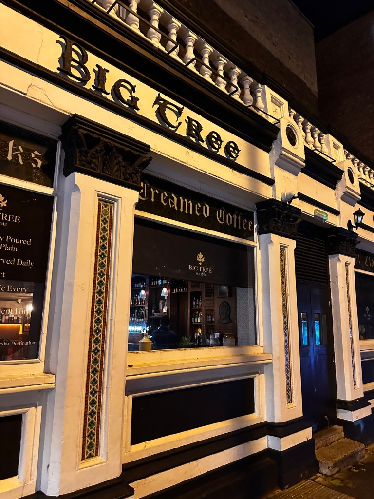 From there, we ambled back in search of dinner, stumbling upon The Big Tree, a quiet sanctuary next to our hotel where the pints were cheaper, the volume tolerable, and the collective sigh of relief audible.