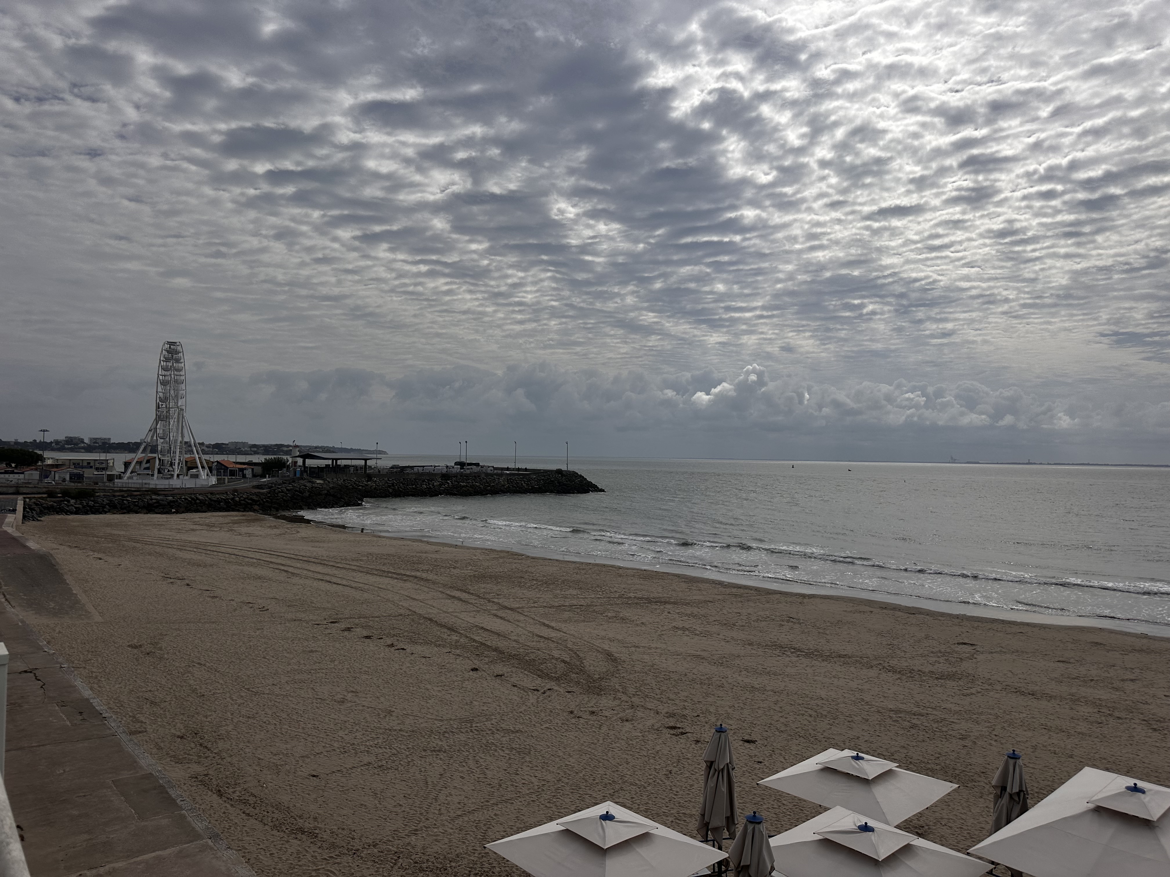 We arrived by 2 p.m. under what meteorologists like to call “grizzly” weather — that special French blend of drizzle, mist, and existential doubt. Luckily, our room was ready, which meant we could immediately dump the luggage and head straight to the beach… because, priorities.