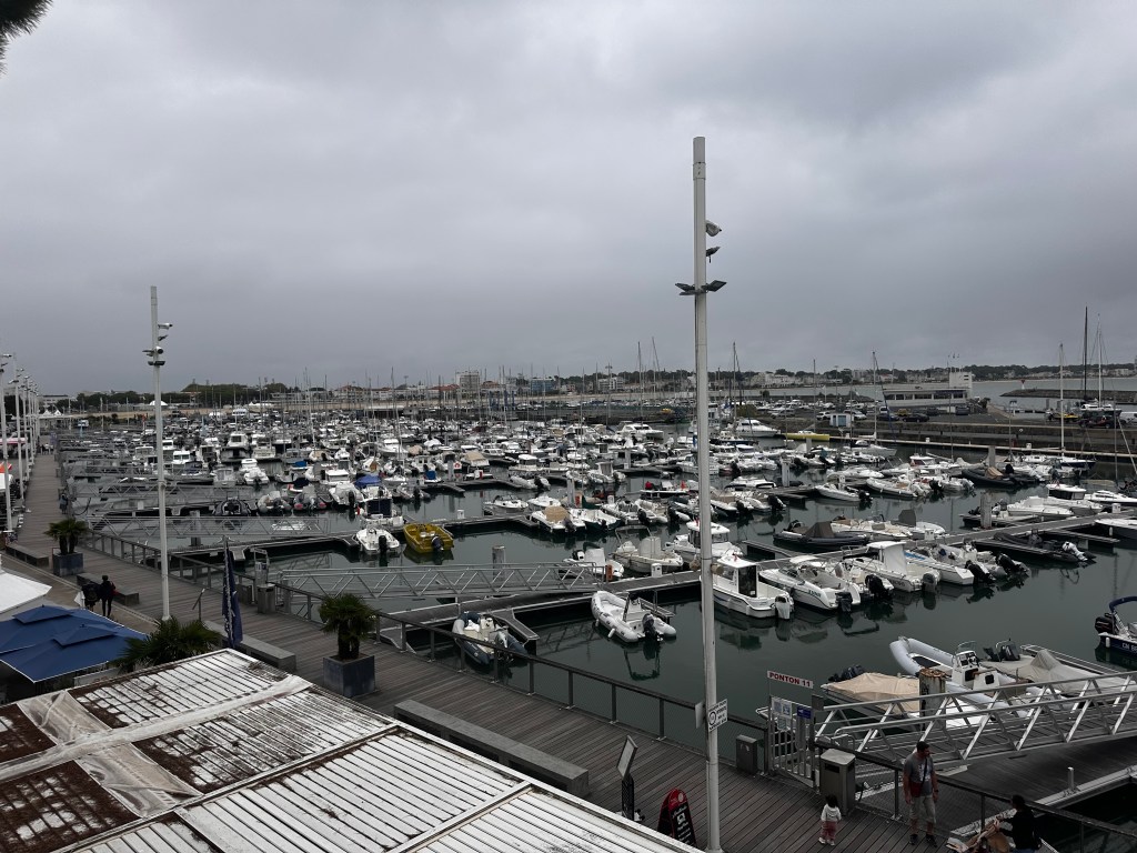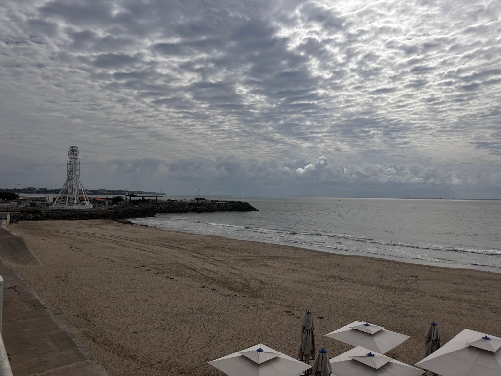 By the time we awoke, the sky was still sulking, but aperitif o’clock waits for no one. We set out on foot, scanning the beachfront for a lively spot, only to find that in October, Royan is about as lively as a Sunday school picnic in a thunderstorm. Still, we located a brasserie with both lights on and staff visible — a rare combination — and settled in for drinks and dinner. The food was good, the wine was good, and the stroll back to the hotel was mercifully short.